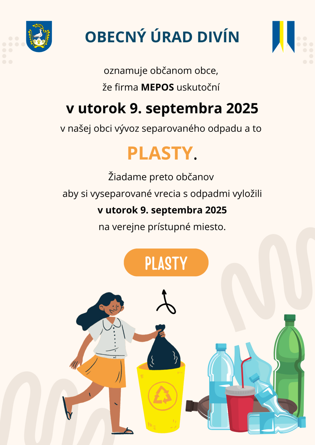 v utorok 9. septembra 2025 v našej obci vývoz separovaného odpadu a to PLASTY.